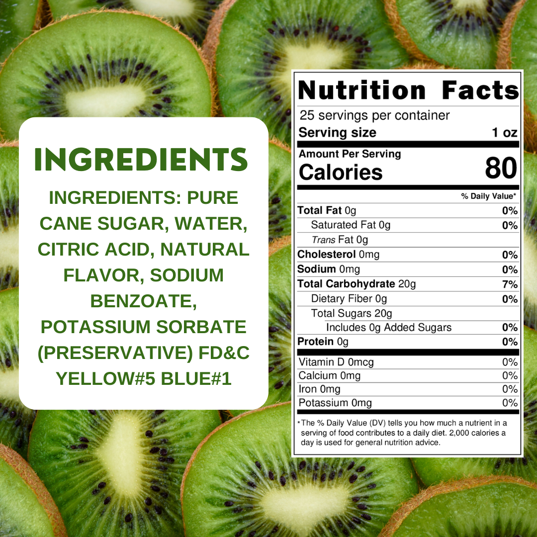 Introducing our vibrant Kiwi Flavored Simple Syrup – a burst of exotic kiwi goodness in every pour! This syrup captures the essence of ripe kiwis, delivering a sweet and tangy flavor profile that's perfect for adding a touch of tropical delight to your culinary creations and beverages.