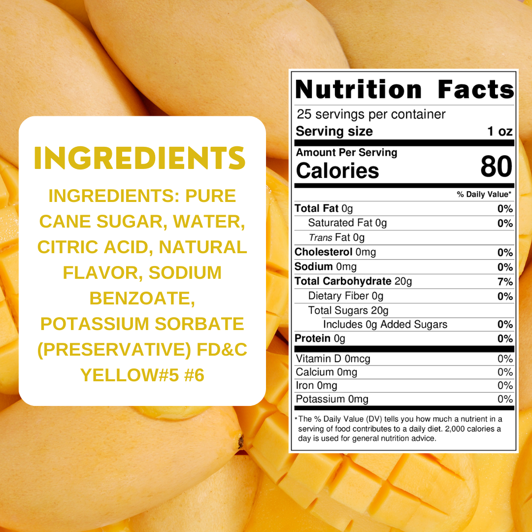 Introducing our tropical Mango Flavored Simple Syrup – a burst of exotic delight in every pour! This syrup captures the essence of ripe mangoes, delivering a sweet and fruity flavor profile that's perfect for adding a touch of tropical indulgence to your culinary creations and beverages.