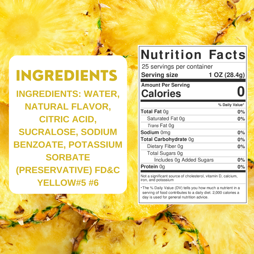 Introducing our tropical delight: Sugar-Free Pineapple Simple Syrup. This syrup lets you savor the exotic essence of juicy pineapples without the guilt. With zero sugar and all the vibrant, fruity flavor you crave, this syrup is a game-changer for health-conscious foodies and pineapple enthusiasts.