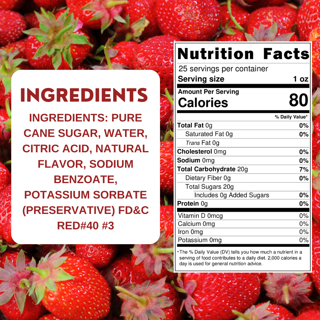 Introducing our delightful Strawberry Flavored Simple Syrup – a burst of fruity goodness in every pour! This syrup captures the essence of ripe strawberries, delivering a sweet and juicy flavor profile that's perfect for adding a touch of berry bliss to your culinary creations and beverages.